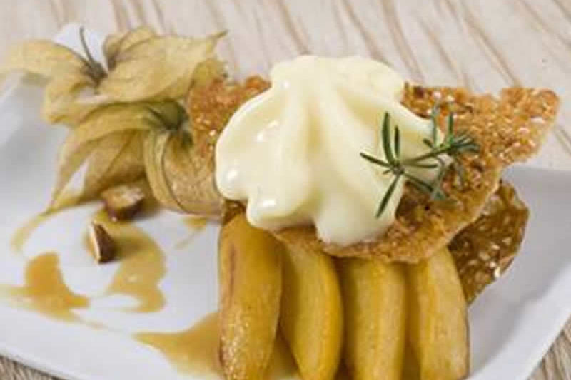 L’alliance de la saveur subtile de la mangue caramélisée et du croquant délicat de la tuile.